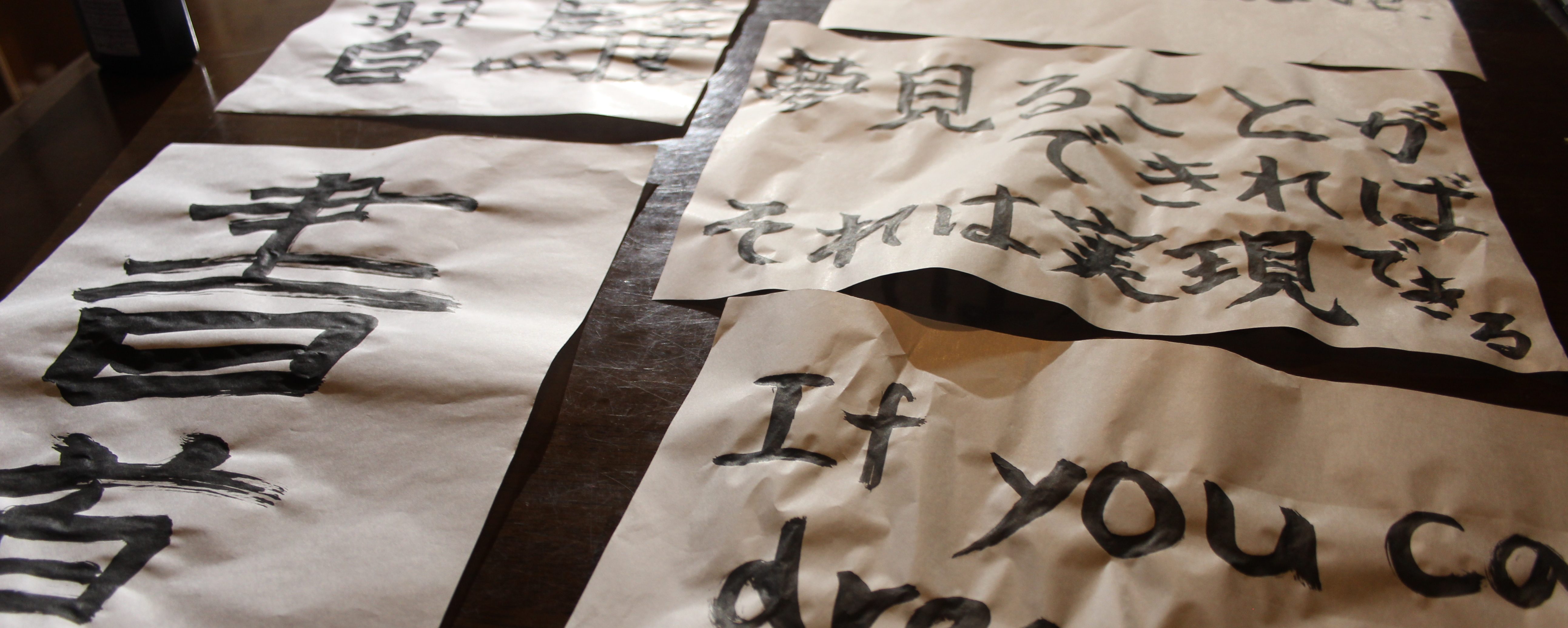 国内からのお客様はもちろん、国外からのお客様も多く参加されます。自分の名前やかっこいいと思う漢字やひらがななどを自由に書いてみましょう。絵も描いちゃって大丈夫です。